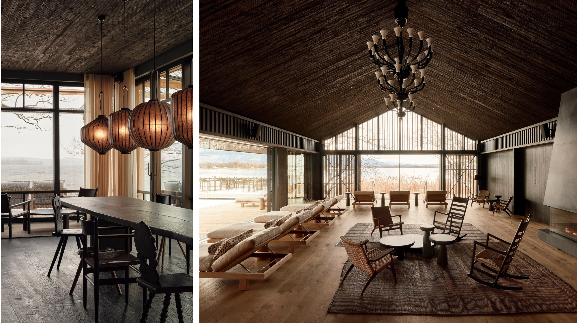 Und Torben Hansen (Founder & CEO von Schotten & Hansen) ergänzt: "Wir sind stolz darauf, mit unserer Handwerkskunst zur einzigartigen Atmosphäre dieses außergewöhnlichen Projektes beigetragen zu haben. Sämtliche Böden in Bar, Lounge, Restaurant, Bayerischer Stube, Yoga- und Fitnessbereich sowie im Bootshaus wurden mit Langdielen von Schotten & Hansen ausgestattet. Mit höchster Sorgfalt, handwerklicher Präzision und in enger Abstimmung mit dem Architekten." Dies nicht von ungefähr, beteiligt sich Matteo Thun bei der Gestaltung seiner ganzheitlich gedachten und stimmig umgesetzten Projekte natürlich auch an der Gestaltung der Innenräume, des Interior Designs. Das Motto für das Chiemgauhof Lakeside Retreat könnte lauten: "Authentisch, erdverbunden, zeitlos schön", erfährt man im Blog-Beitrag von Schotten & Hansen.